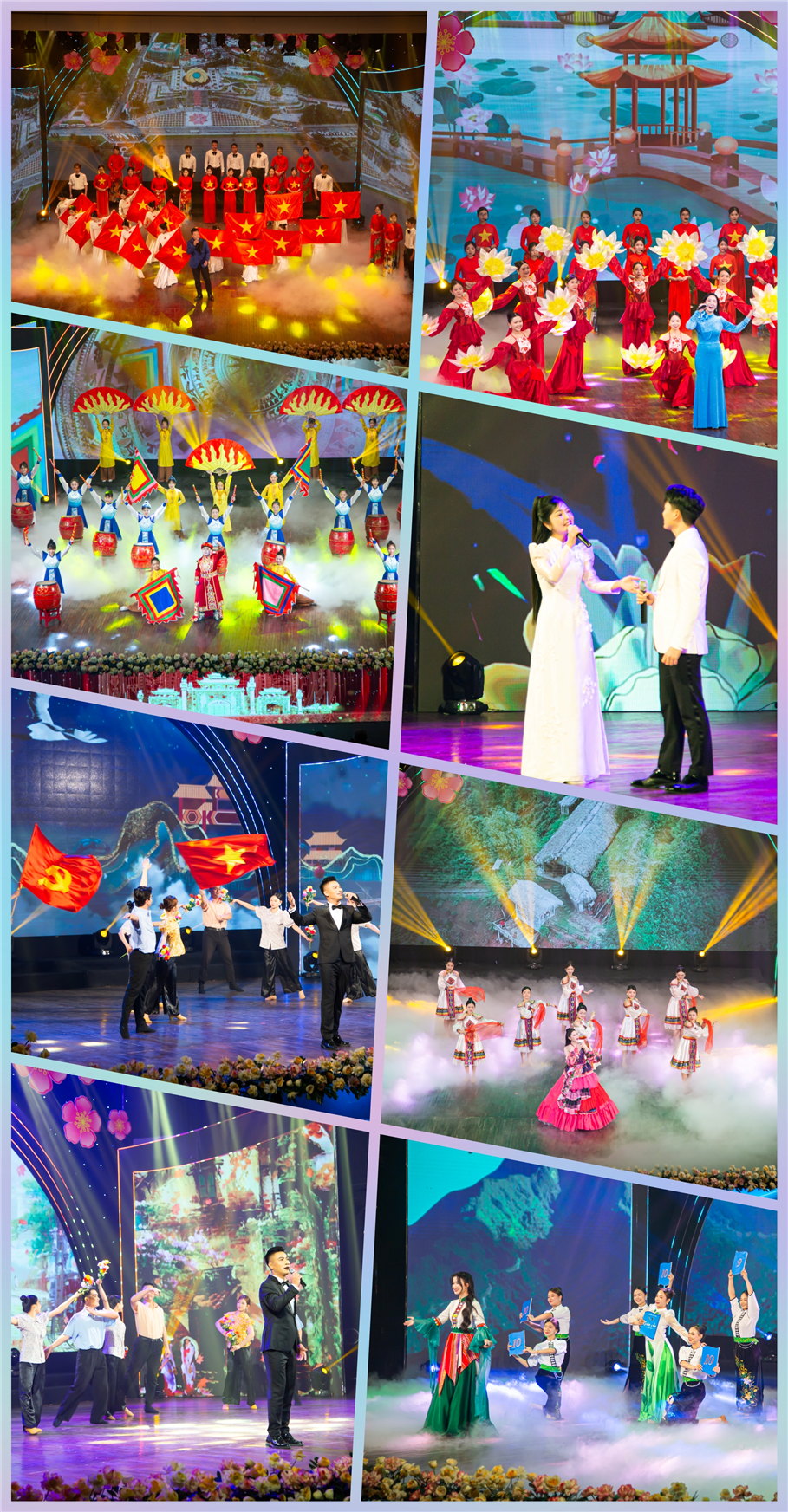 Đặc biệt, những ca khúc mang âm hưởng miền núi như “Nhà em ở lưng đồi”, “Cõng chữ về bản”, “Tiếng khèn mùa ban nở” đã chạm đến trái tim người xem, khắc họa hình ảnh những em nhỏ vùng cao tuy còn nhiều thiếu thốn nhưng luôn giàu nghị lực và khát khao đến trường. Sân khấu như bừng sáng với những hình ảnh đẹp về con người và cảnh sắc Việt Nam mỗi độ xuân về, từ thành thị đến những bản làng xa xôi.