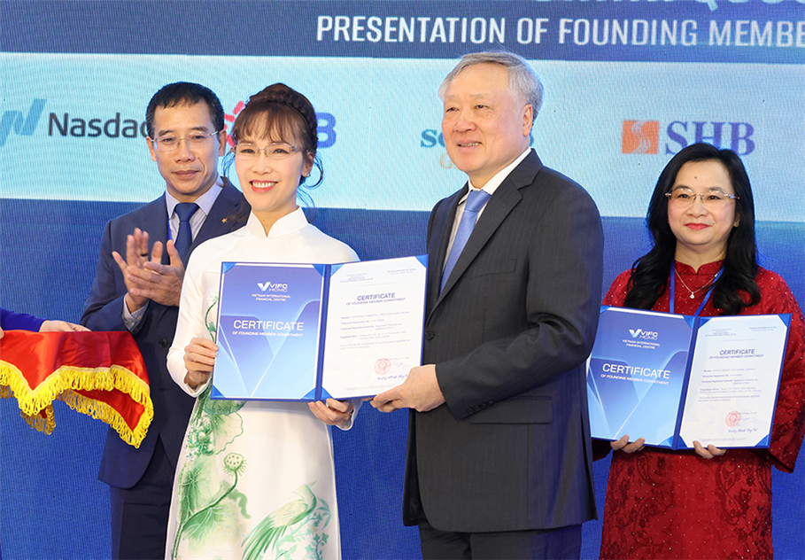 Phó Thủ tướng Thường trực Chính phủ Nguyễn Hòa Bình trao Giấy chứng nhận Thành viên sáng lập của Trung tâm Tài chính quốc tế Việt Nam tại TP.Hồ Chí Minh