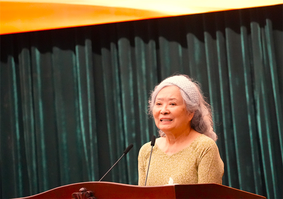 Bà Hoàng Thị Khánh, Chủ tịch Hội Chiến sĩ cách mạng bị địch bắt, tù đày TP. Hồ Chí Minh phát biểu tại buổi họp mặt