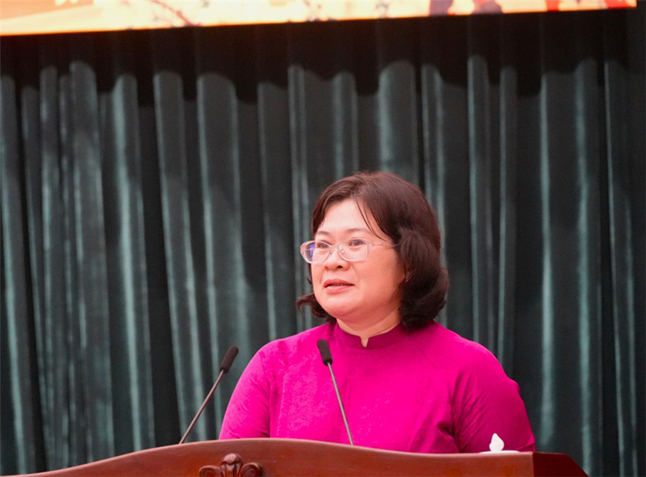 Phó Bí thư Thành ủy TP. Hồ Chí Minh Văn Thị Bạch Tuyết phát biểu tại buổi họp mặt