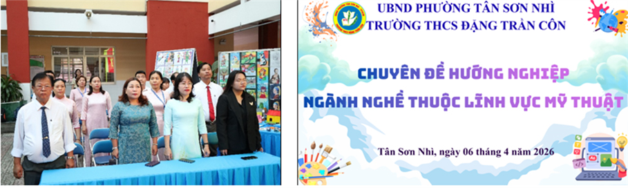 Sáng 6-4, Trường THCS Đặng Trần Côn (phường Tân Sơn Nhì, TPHCM) tổ chức chuyên đề hướng nghiệp với chủ đề “Các ngành nghề thuộc lĩnh vực mỹ thuật” dành cho học sinh khối 8 và 9. Chương trình thu hút sự tham gia của Ban giám hiệu, giáo viên, các đơn vị tư vấn hướng nghiệp cùng đông đảo học sinh.
