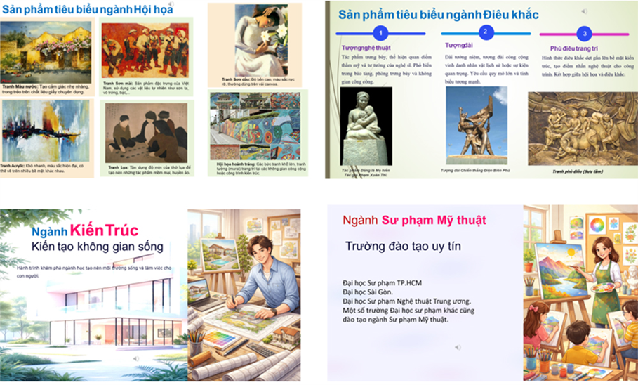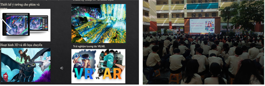 Điểm nhấn của chương trình là các video giới thiệu ngành nghề do chính học sinh thực hiện. Với sự đầu tư công phu, nhiều sản phẩm đã tái hiện sinh động bức tranh toàn cảnh của các lĩnh vực như hội họa, thiết kế đồ họa, thời trang, kiến trúc, mỹ thuật số và đa phương tiện. Không chỉ tiếp nhận kiến thức, học sinh còn được truyền cảm hứng để nuôi dưỡng đam mê, từng bước định hình ước mơ nghề nghiệp.