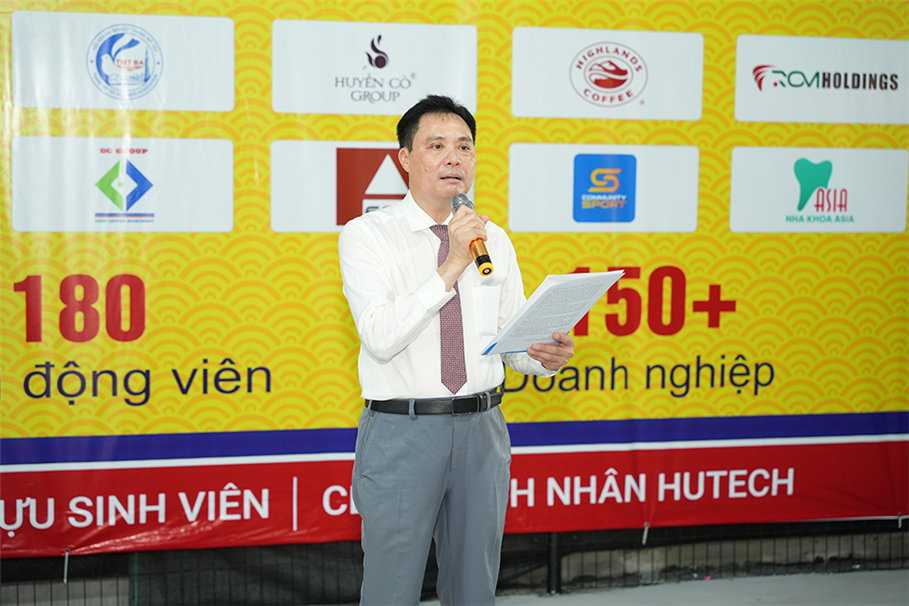 Phát biểu tại lễ khai mạc, TS. Vũ Văn Hoàng - Chủ tịch Hội Cựu sinh viên HUTECH, Chủ tịch CLB Doanh nhân HUTECH, gửi tới quý khác mời và các vận động viên tham dự giải lời chào cùng lời chúc sức khỏe trân trọng nhất!