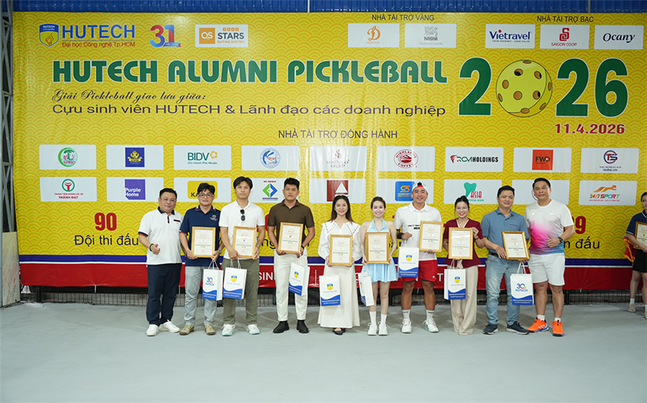 Sáng 11/4/2026, giải Pickleball giao lưu giữa cựu sinh viên HUTECH và lãnh đạo các doanh nghiệp năm 2026 - HUTECH Alumni Pickleball 2026 do Hội Cựu sinh viên HUTECH, Câu lạc bộ (CLB) Doanh nhân HUTECH và Trung tâm Hợp tác Doanh nghiệp HUTECH phối hợp tổ chức tại sân Thanh Đa Pickleball (P. Bình Quới, TP.HCM). Giải được tổ chức nhằm chào mừng kỷ niệm 31 năm ngày thành lập Trường Đại học Công nghệ TP.HCM (26/4/1995 - 26/4/2026).