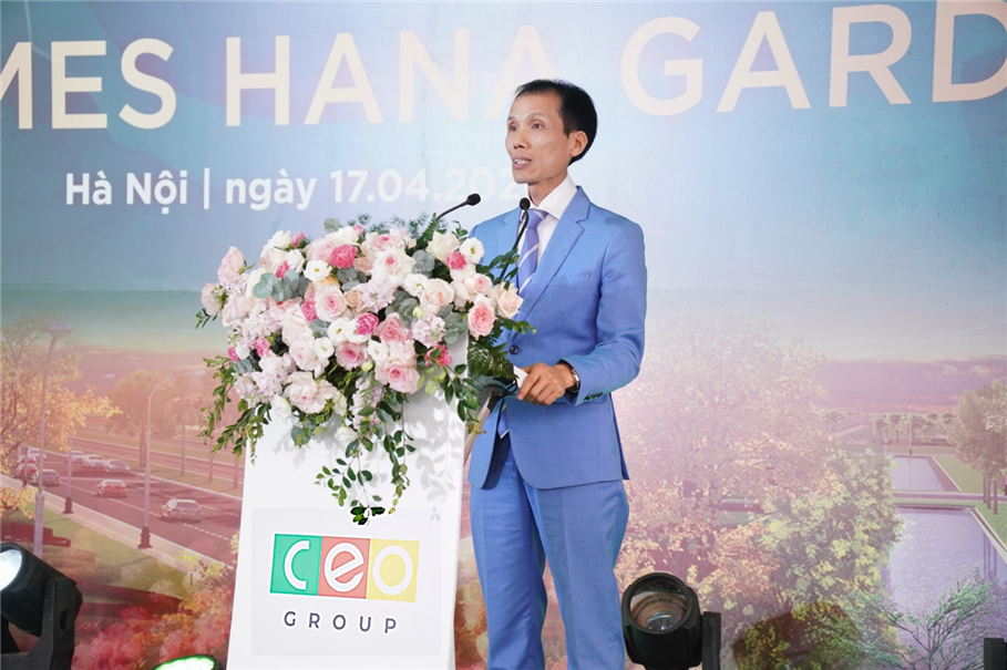 Phát biểu tại buổi lễ, Tiến sĩ, Luật sư Đoàn Văn Bình - Chủ tịch Tập đoàn CEO cho biết dự án được phát triển trên cơ sở tôn trọng và khai thác giá trị văn hóa của vùng đất Mê Linh - quê hương Hai Bà Trưng huyền thoại, địa danh nổi tiếng với nghề trồng hoa truyền thống.