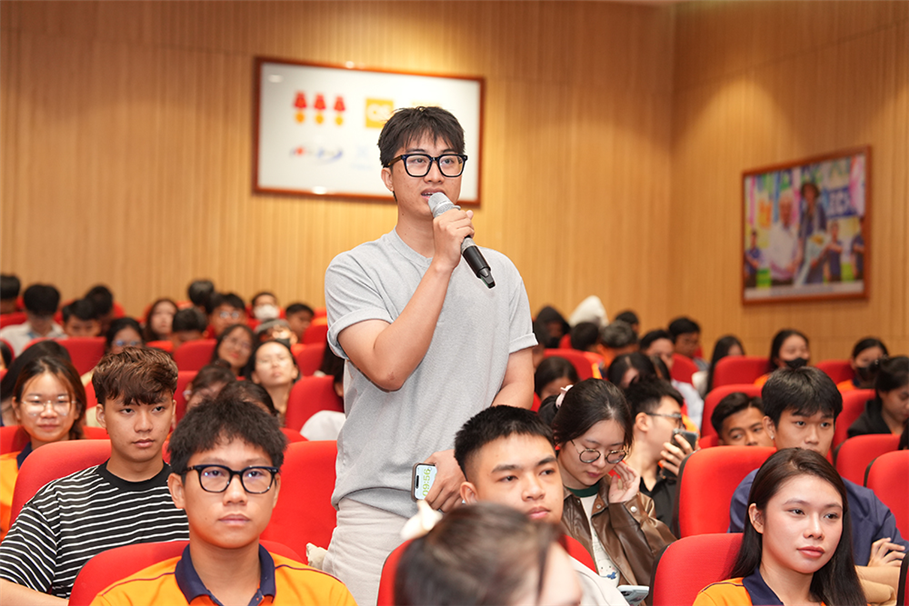 Sinh viên đặt câu hỏi giao lưu với TS. Vũ Văn Hoàng