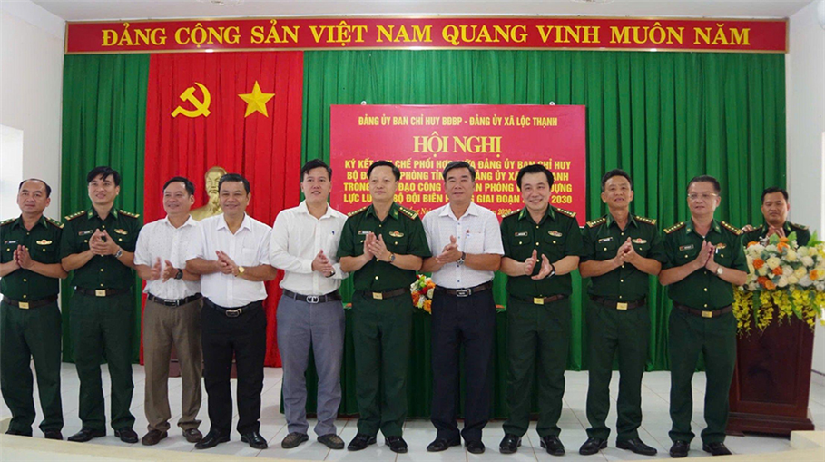 Dưới sự chứng kiến của thủ trưởng Bộ CHQS tỉnh, Đảng ủy Ban Chỉ huy BĐBP và Đảng ủy xã Lộc Thạnh ký kết phối hợp giai đoạn 2026-2030