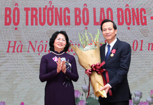 Phó Chủ tịch nước tặng hoa chúc mừng Bộ trưởng Đào Ngọc DungTại Lễ trao tặng, đồng chí Đặng Thị Ngọc Thịnh, Phó Chủ tịch nước cũng đã trao tặng Huân chương Độc lập hạng Ba cho ông Nguyễn Trọng Đàm, nguyên Thứ trưởng Bộ Lao động – TBXH. Trao Huân chương Lao động hạng Nhì cho: ông Cao Văn Sâm, nguyên Phó Tổng cục trưởng Tổng cục Giáo dục nghề nghiệp; bà Mai Thúy Nga, nguyên Phó Tổng cục trưởng Tổng cục Giáo dục nghề nghiệp; bà Nguyễn Thị Hải Vân, nguyên Cục trưởng Cục Việc làm; ông Cao Quang Đại, Vụ trưởng Vụ kỹ năng nghề (Tổng cục Giáo dục nghề nghiệp).