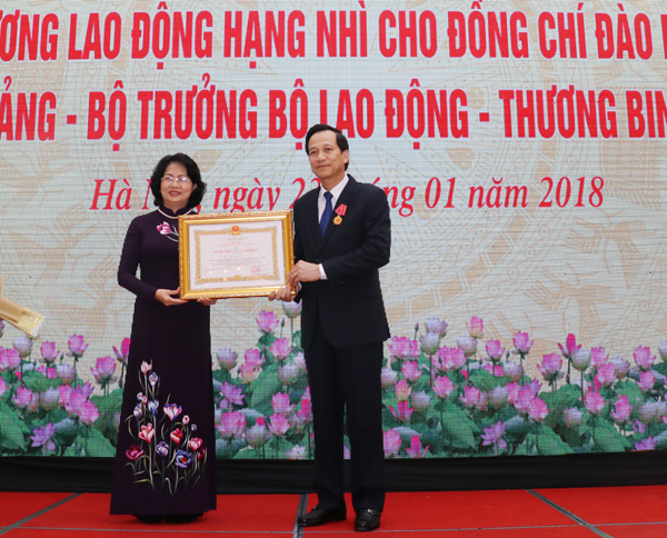 (LĐXH)- Chiều 23/1, tại Hà Nội, Bộ Lao động – TBXH tổ chức Lễ trao tặng Huân chương Lao động hạng Nhì, phần thưởng cao quý của Đảng và Nhà nước cho Bộ trưởng Đào Ngọc Dung và danh hiệu vinh dự Nhà nước cho các cá nhân thuộc Bộ.
