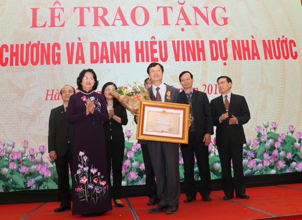 Phó Chủ tịch nước Đặng Thị Ngọc Thinh trao danh hiệu Nhà giáo Ưu túTrao Huân chương Lao động hạng Ba cho các ông: Tạ Đức Huy, Phó Vụ trưởng Vụ giáo viên và cán bộ quản lý dạy nghề; Đinh Tiến Dũng, Phó Vụ trưởng Vụ kỹ năng nghề thuộc Tổng cục Giáo dục nghề nghiệp. Trao danh hiệu Nhà giáo Ưu tú cho các ông: TS. Vũ Xuân Hùng, Viện trưởng Viện nghiên cứu khoa học dạy nghề; TS. Đặng Xuân Thức, Vụ trưởng Vụ Tổ chức cán bộ (Tổng cục Giáo dục nghề nghiệp).